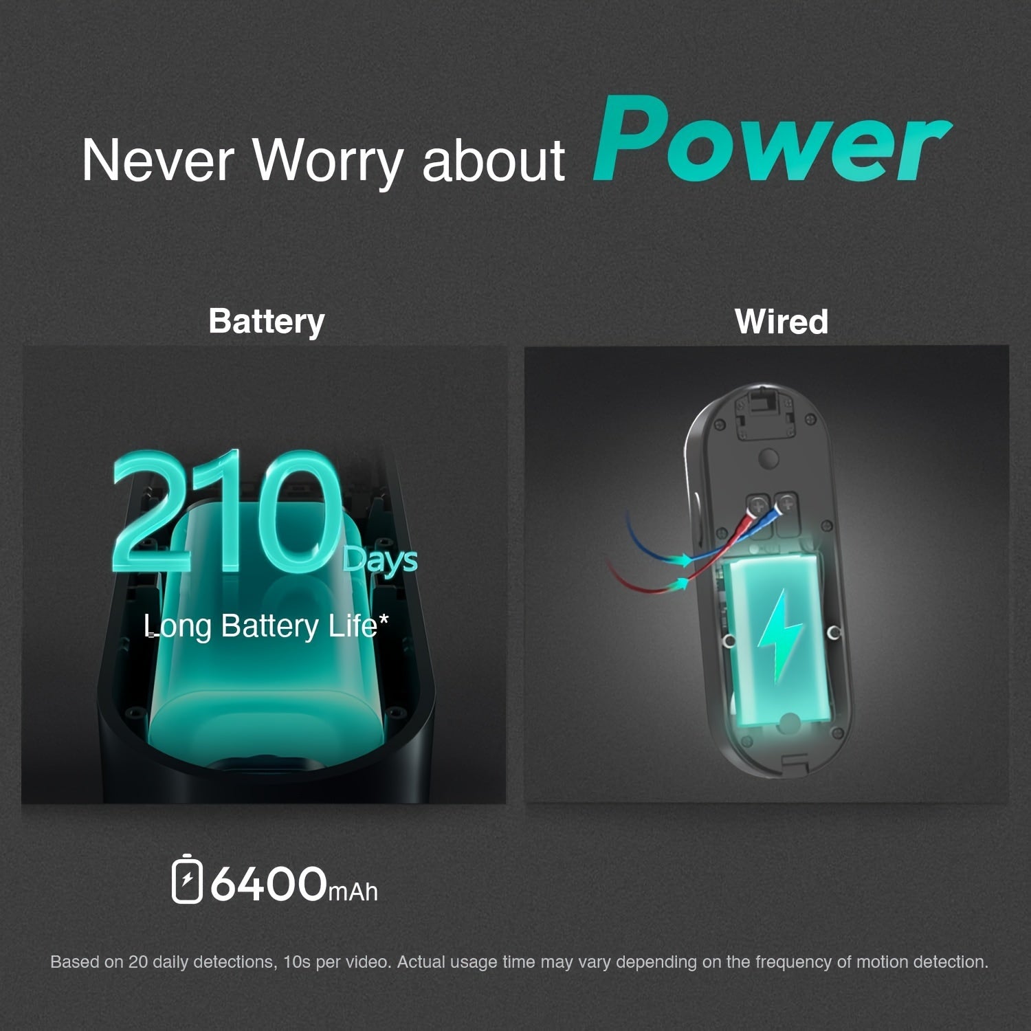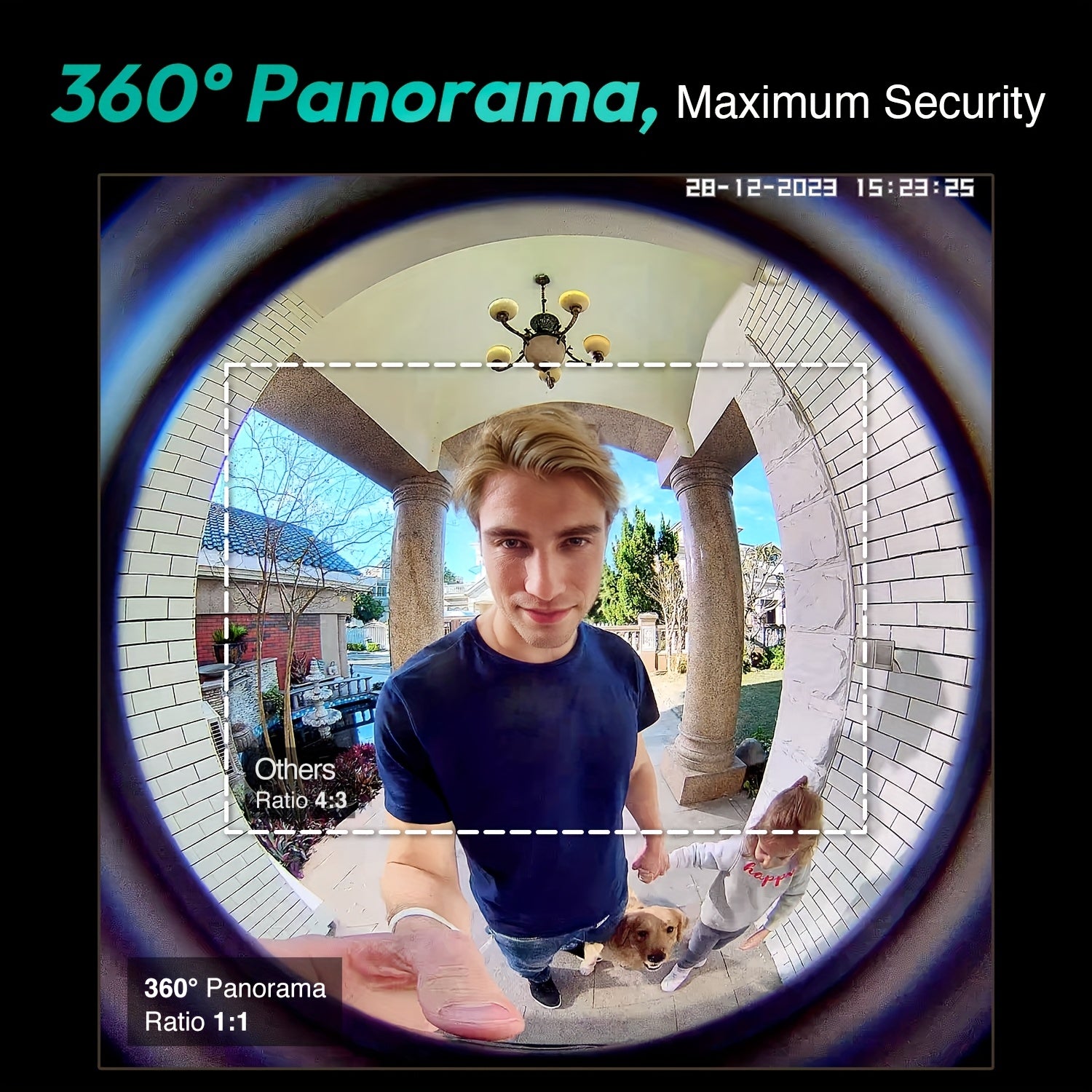 3K Video Doorbell Camera Wireless, No Monthly Fee, 5MP Battery Doorbell Camera, Head-to-Toe, 360° View, AI&VR Detection, HDR, Night Vision, 2-Way Talk, 2.4GHz WiFi, Easy to Install