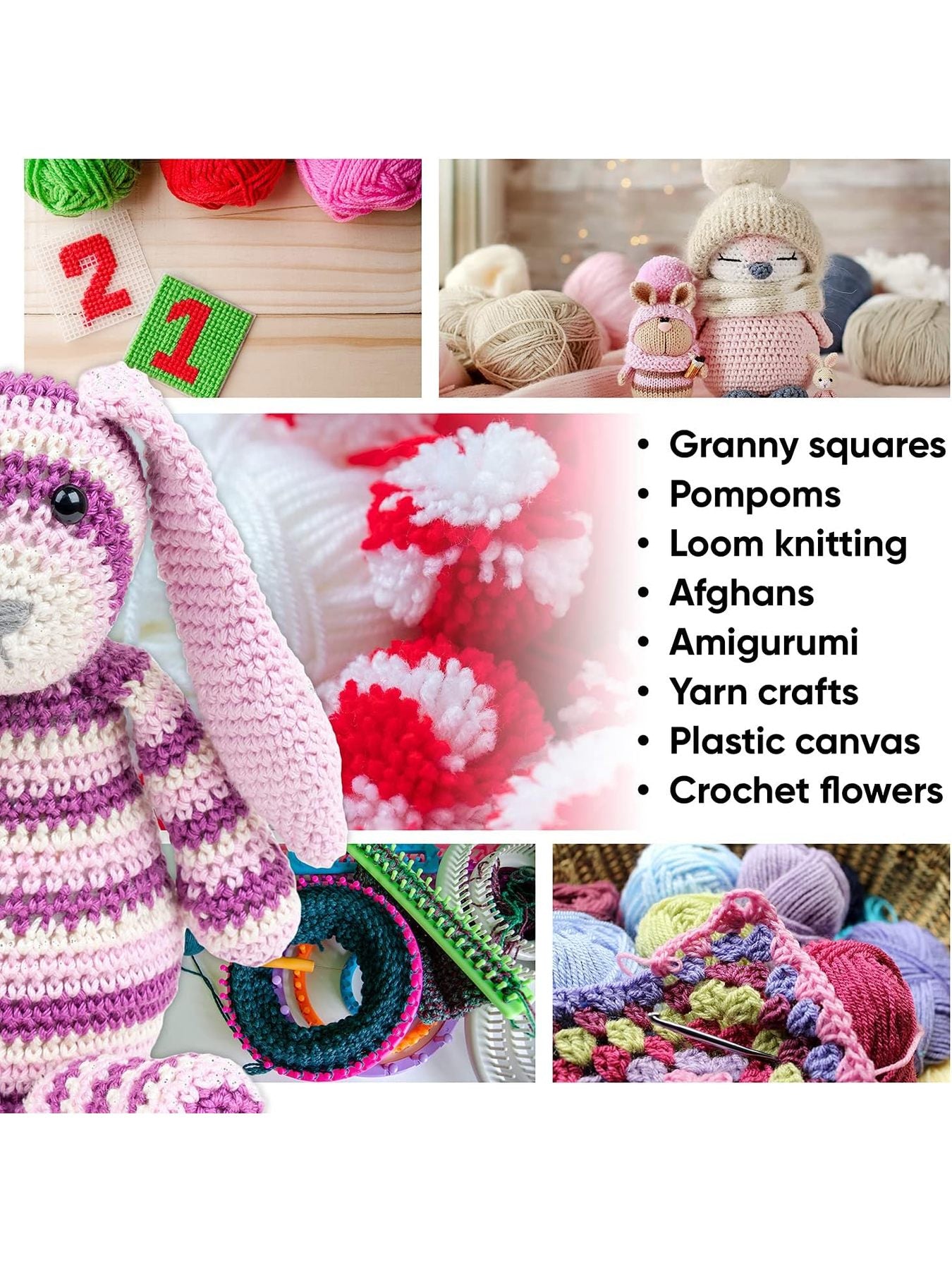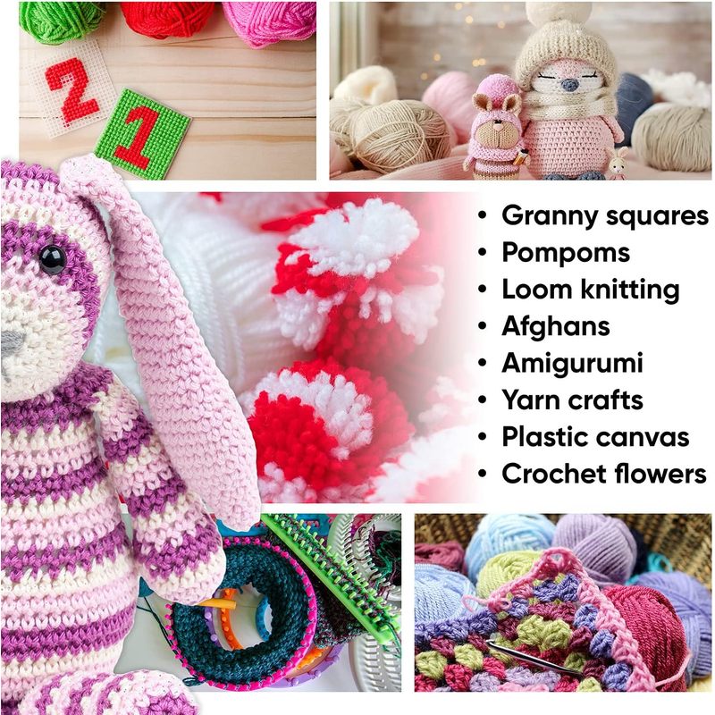 Crafts: From amigurumi to yarn for pom pom making, this is the perfect crafting starter set. The bulk yarn skeins are colorful, come in a great assortment, and the mini skeins are an ideal size
