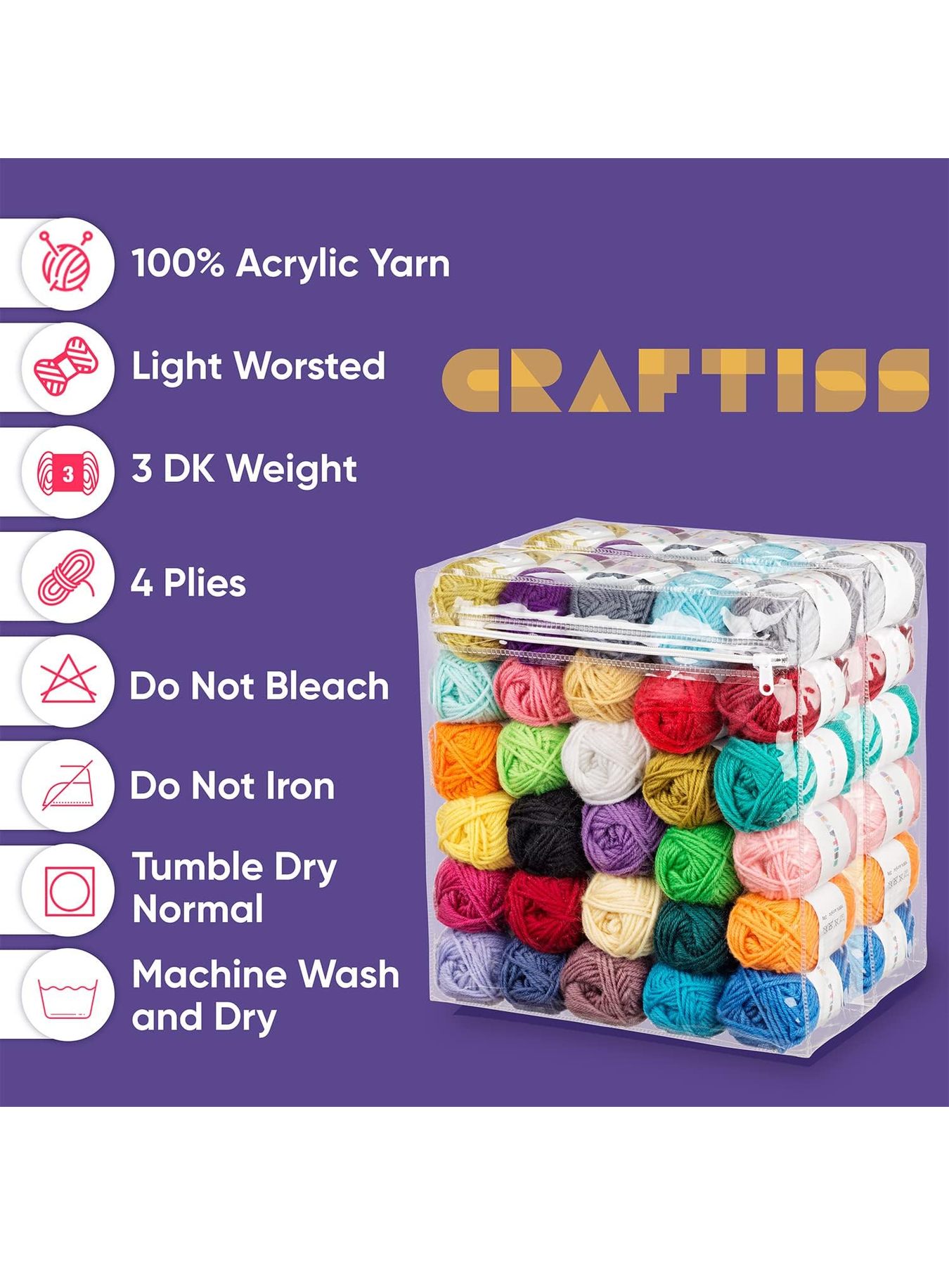 PERFECT YARN SET - UNIQUE OFFER Acrylic: Each of the 60 acrylic yarn skeins is durable and easy to work with. Acrylic holds color, and the multipack of 3 dk yarn supplies is perfect for an assortment of crafts, knitting, and crochet