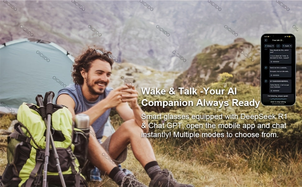 AI Smart Glasses, Smart Glasses with 160+ Languages Real Time Translation Support, Chat GPT System, OICIIDO New Multi-functional Audio Glasses for Men And Women, Built-in Microphone And Speaker, HD Voice Calls And HIFI Music