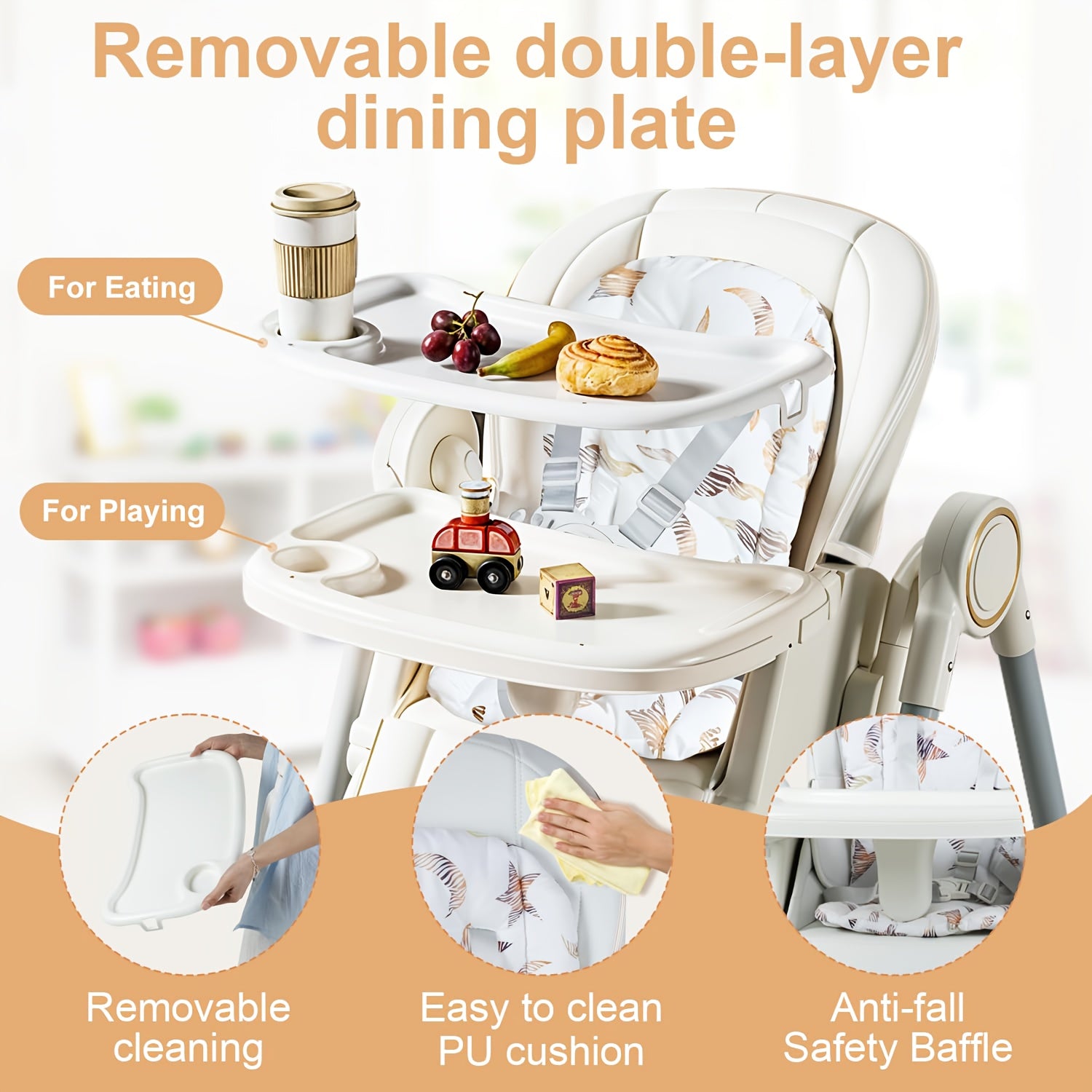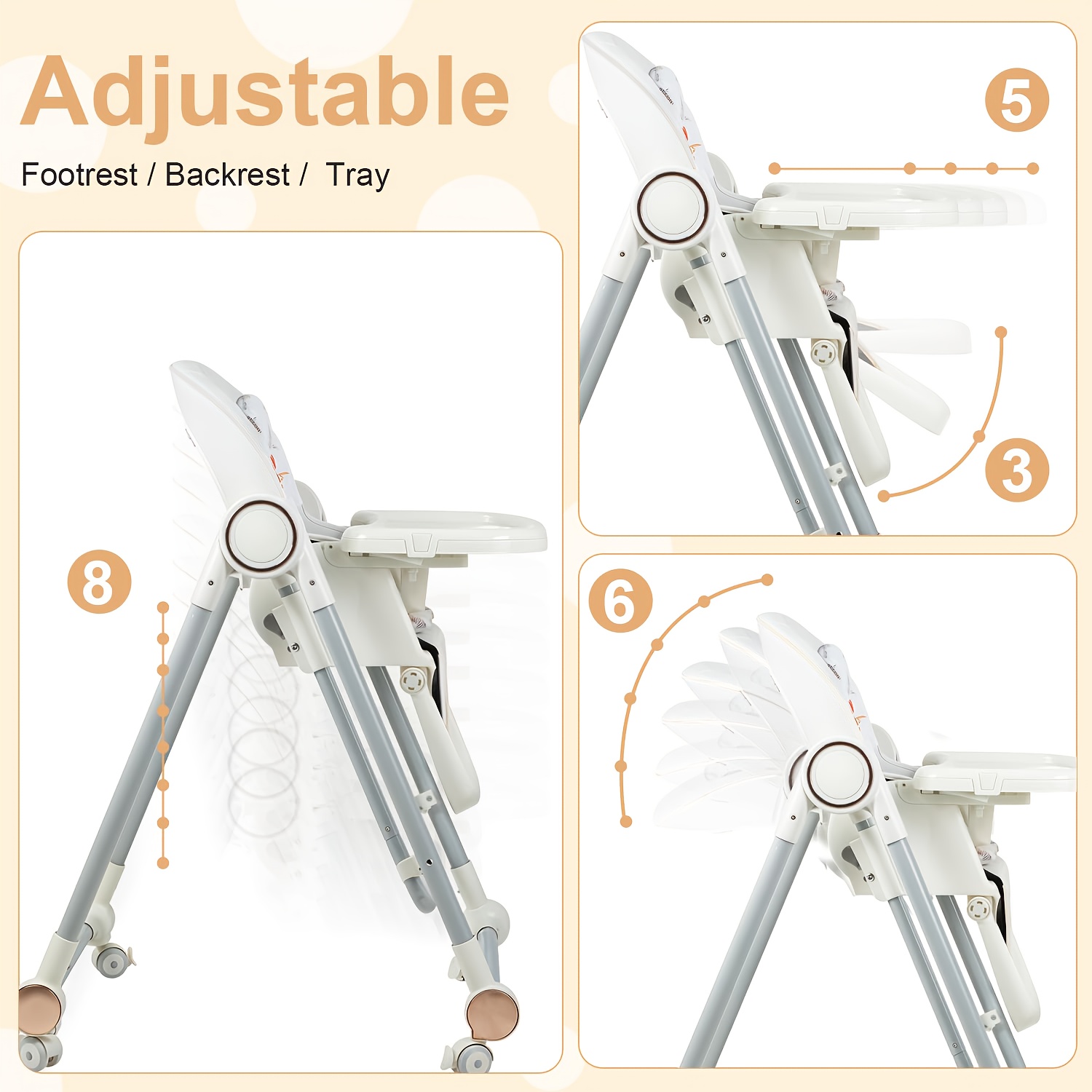 Baby High Chair, Foldable High Chair, Adjustable 2-in-1 High Chair&Swing Chair with 4 Locking Wheels, 7-speed Adjustable, Detachable Cushion, Safe/Comfortable/Easily Meets Baby's Feeding And Resting Needs, 1pc
