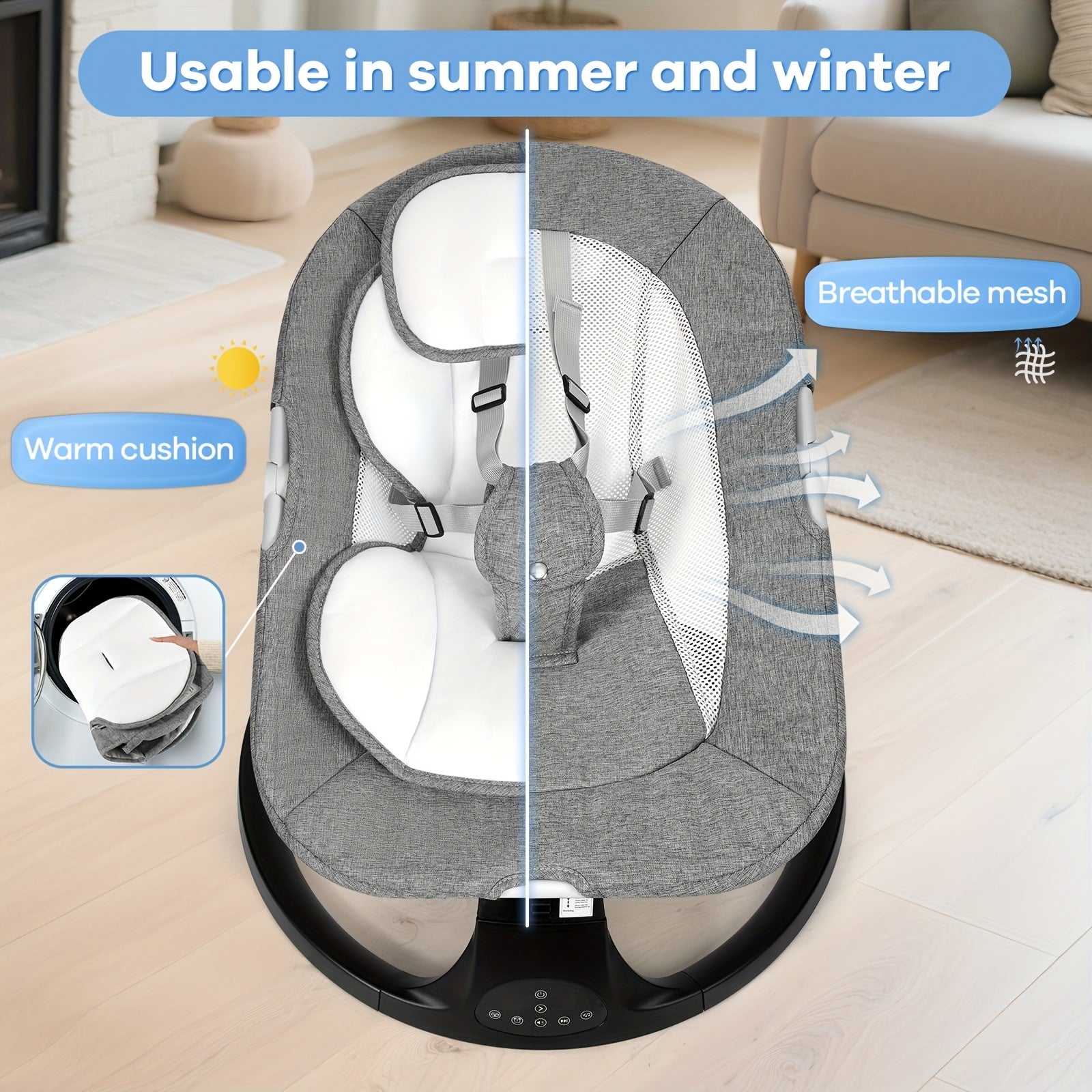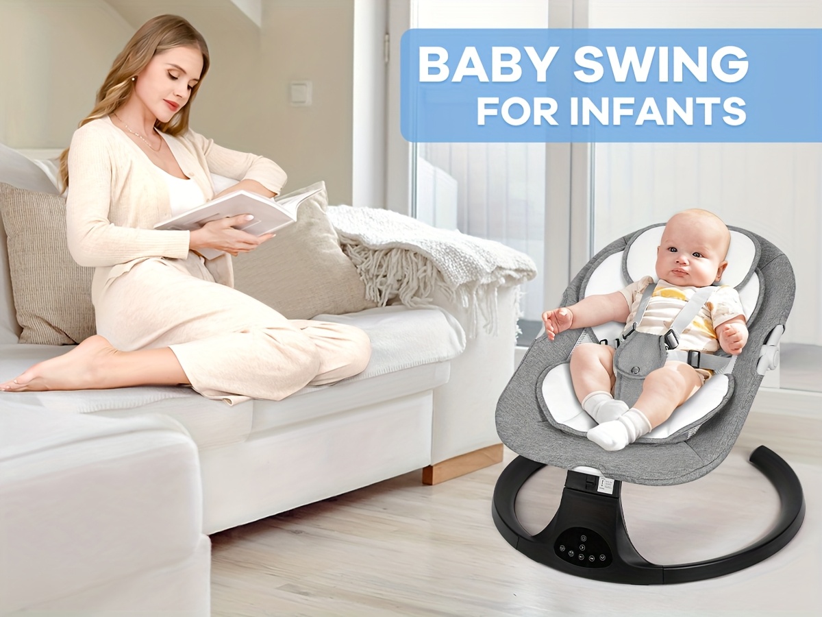 Baby Swing with 5 Speed Settings & 10 Lullabies - Portable Infant Swing with 15-Point Safety Belt, Lightweight Foldable Design, Indoor/Outdoor Use, Easy Assembly, Gray & Bright Pink Options for 0-9 Months, Baby Swing Portable