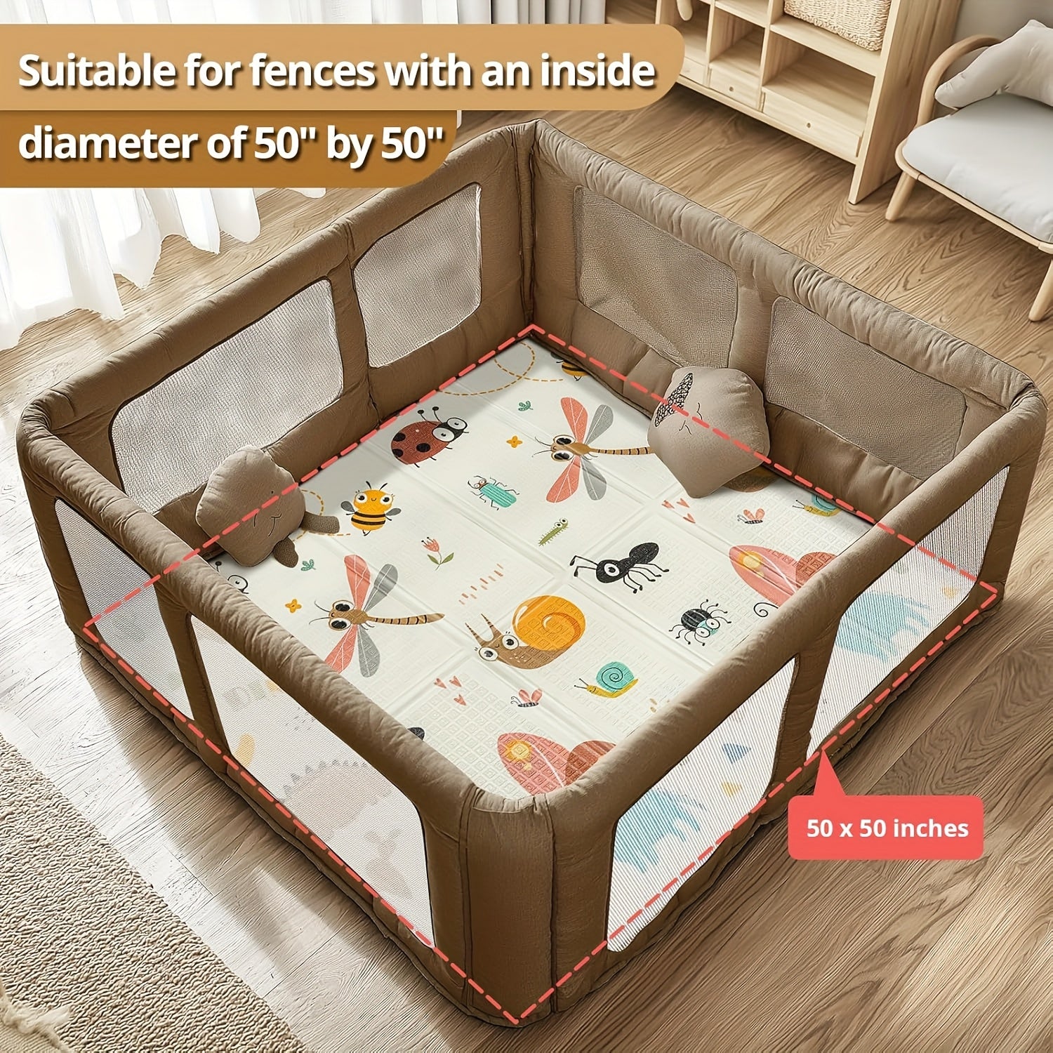 Crawling Game Fence Mat With Cute Cartoon Patterns, Play Game Mat, Baby Swing Suitable For Family Living Rooms, Car Picnics, Travel Home Essentials XPE 50 * 50 Inches, Thick And Soft Size Double-sided Pattern Folding Crawling