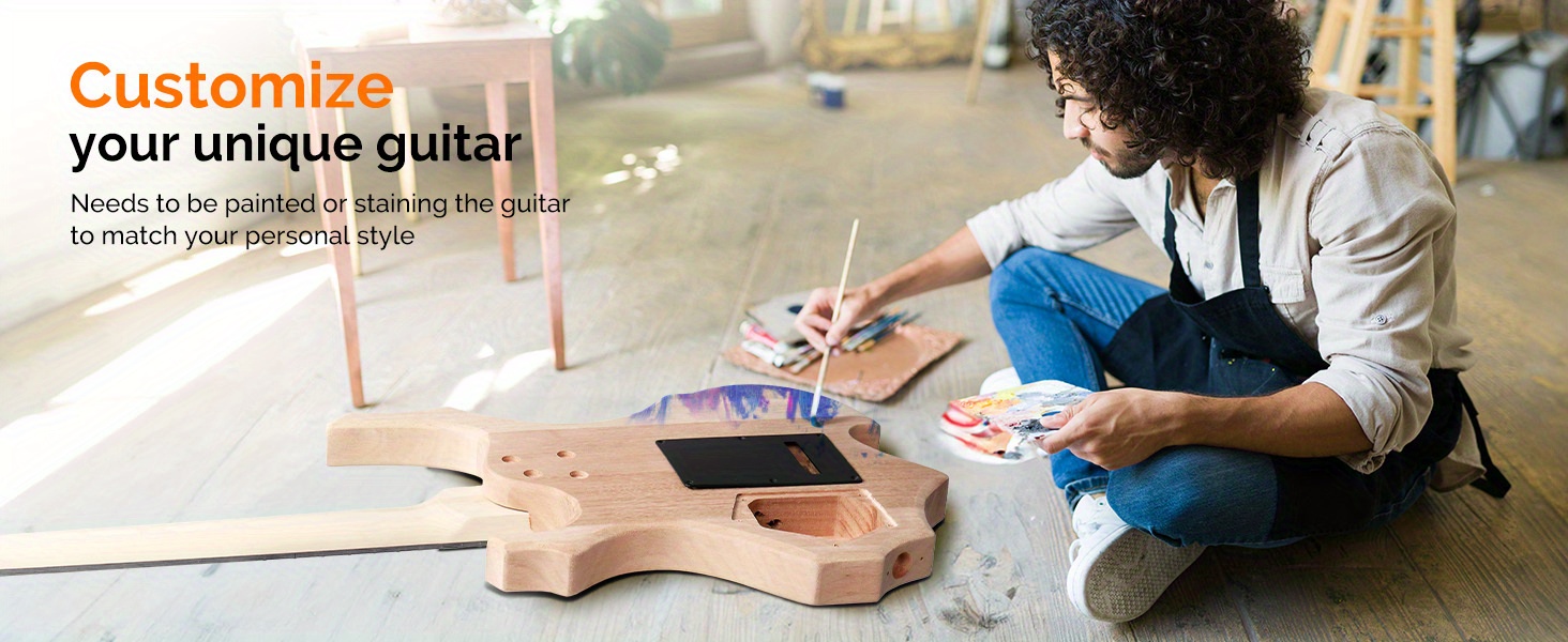 Assembling a DIY guitar kit provides an invaluable hands-on learning experience in guitar construction and electronics. DIY process can be particularly beneficial for maintenance, future modifications, and even inspire further guitar-building projects. Specifications: Style: 6 Strings Electric Guitar Brand: Glarry Size: 36in x 12.6in x 1.65in Weight: 6.6 LB Package Includes: 1 x Electric Guitar; 1 x Guitar Cable; 1 x Guitar Strap; 2 x Plectrum Guitar Color Burlywood Body Material Mahogany
