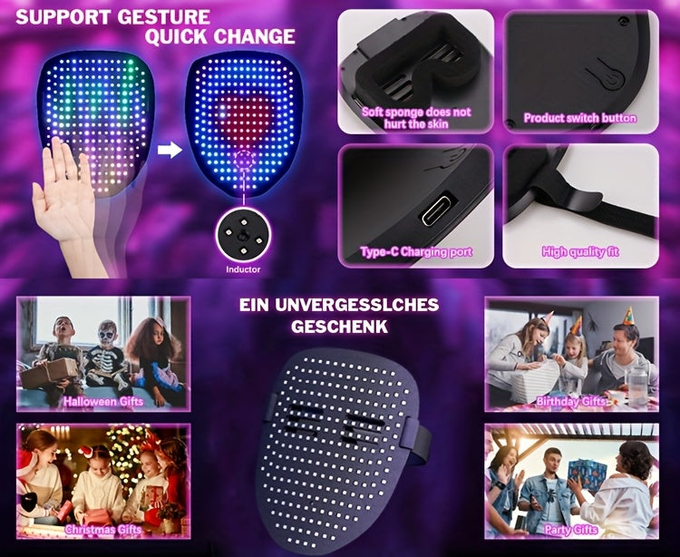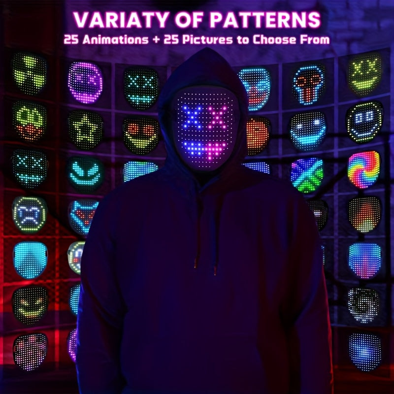 LED Mask with Gesture Sensing, Unisex Light Up Mask with Face Transforming, Lighted Halloween Mask, 25 Moving & 25 Still Pictures, Costume Cosplay Party Masquerade
