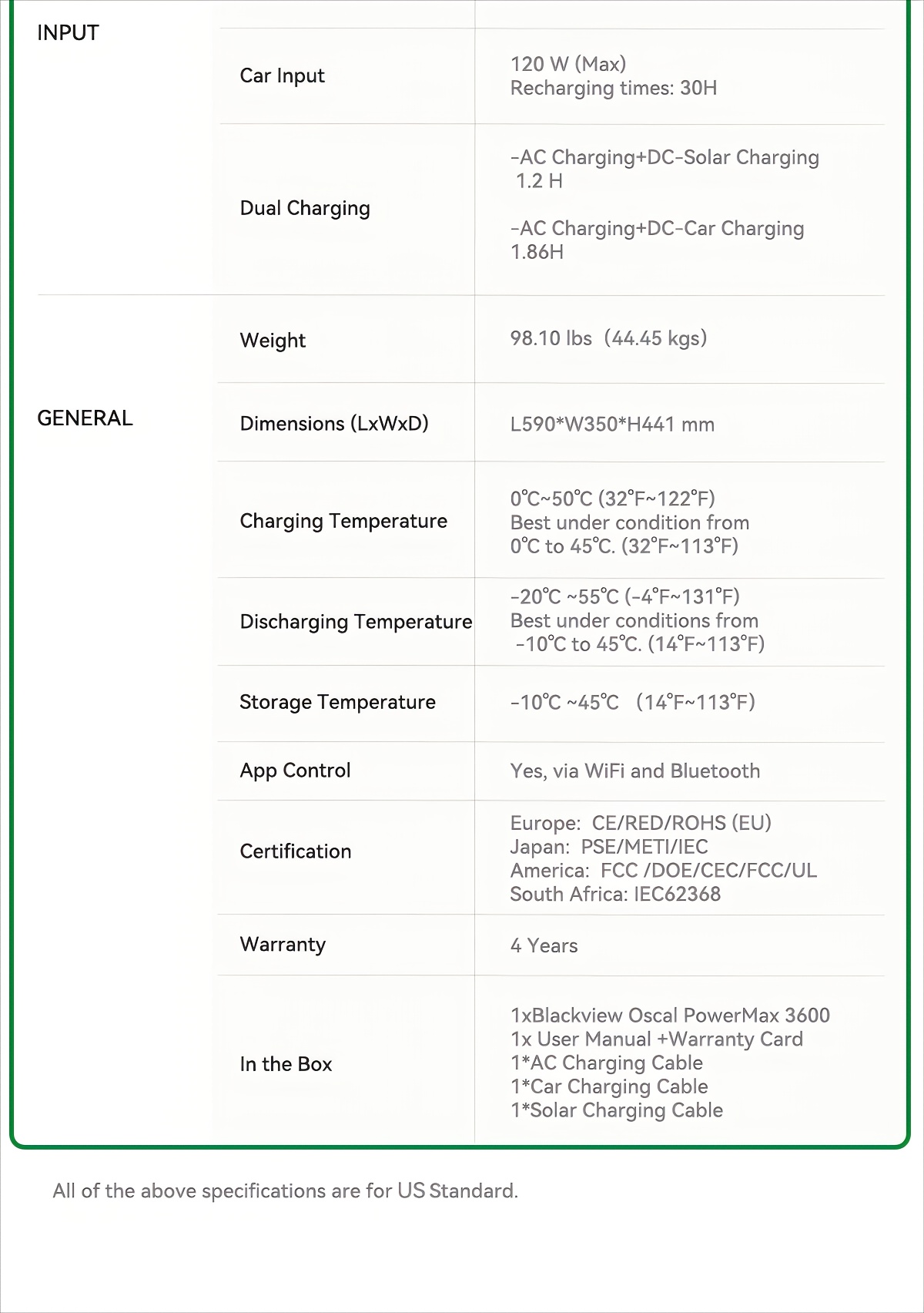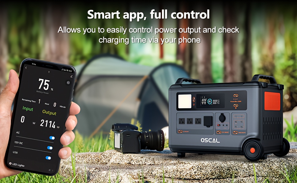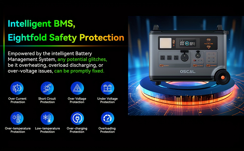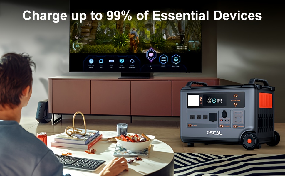 OSCAL PowerMax 3600W 6000W Surge Portable Power Station, 3600Wh LiFePO4 Expandable Solar Generator with 4xAC Outlets, 1.2H Fast Charging, 10ms UPS Backup Power for Home Emergency, Camping, RV, Road Trips - Heavy-Duty Solar-Po