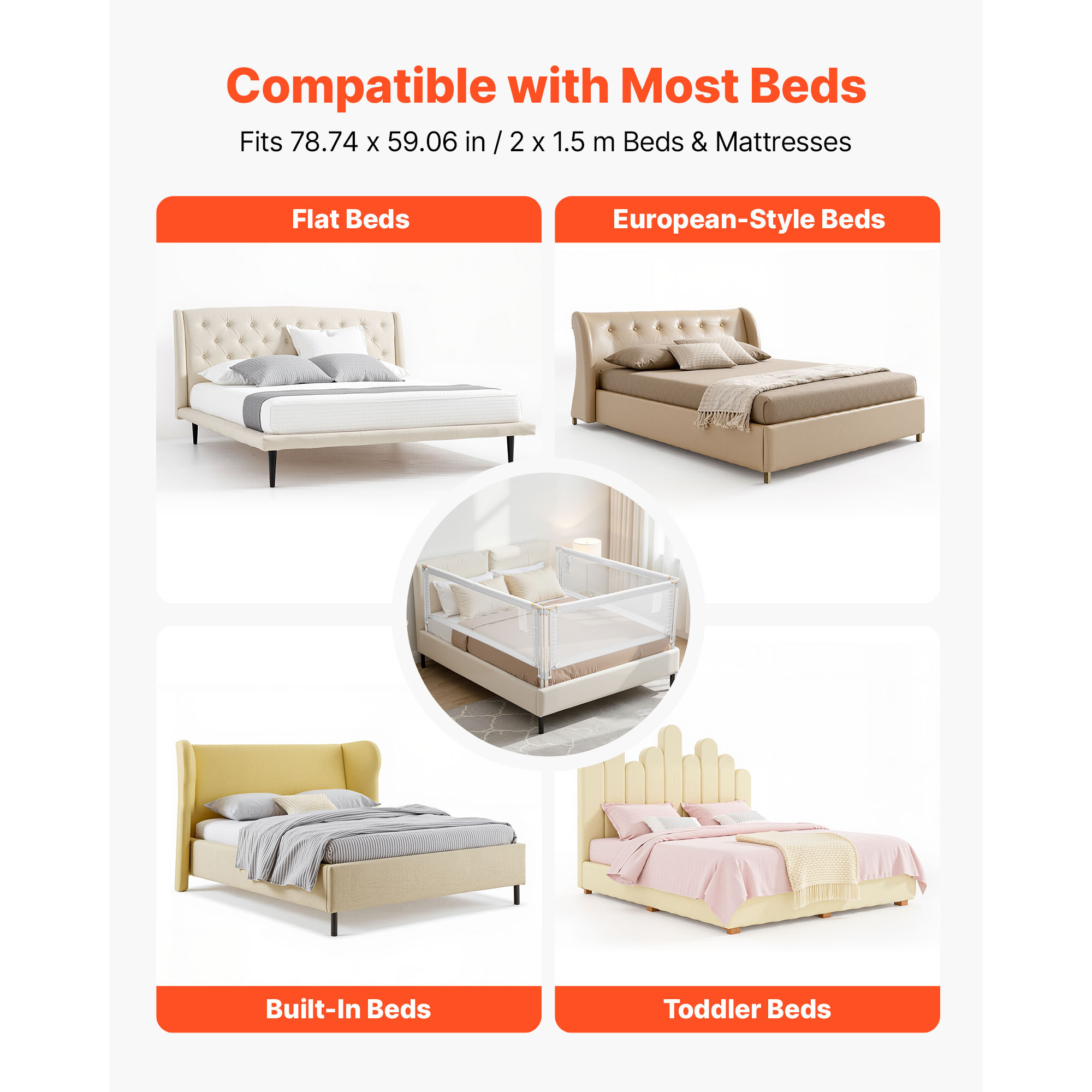 VEVOR 3 Piece Toddler Bed Rail Adjustable Height Bed Side Railing Guard Bumper Queen / King-Size
