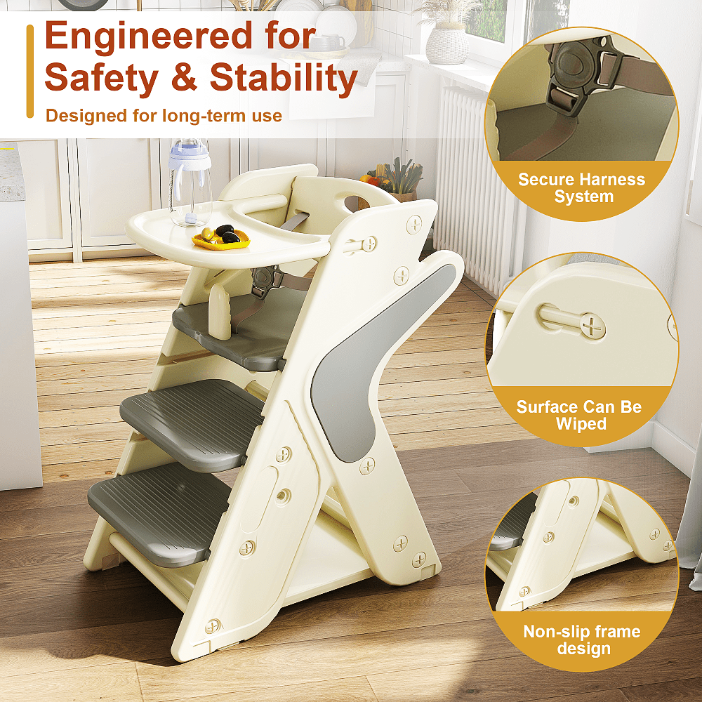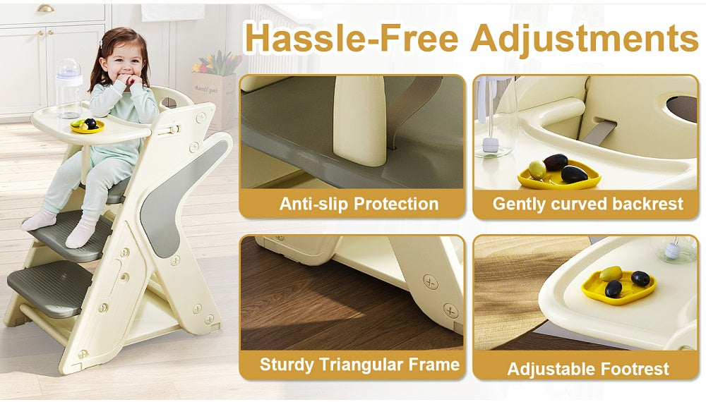 White + Charcoal Gray 16, 54x25, 20x31, 50 Inch Multifunctional Growth Chair HDPE Material Three-in-One Design Adjustable Height Five-Point Safety Belt Kitchen Dining Baby Feeding Learning