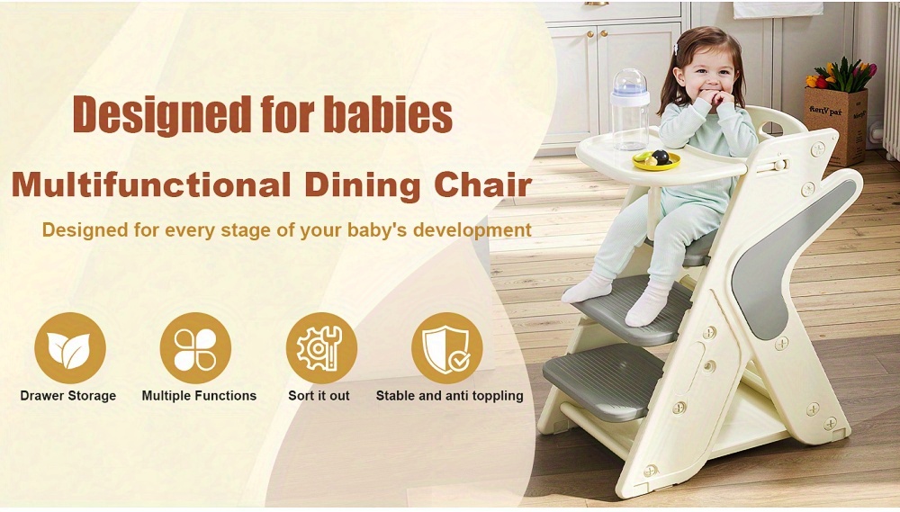 3-in-1 Design – Adapts as Your Child Transitions from Eating to Learning