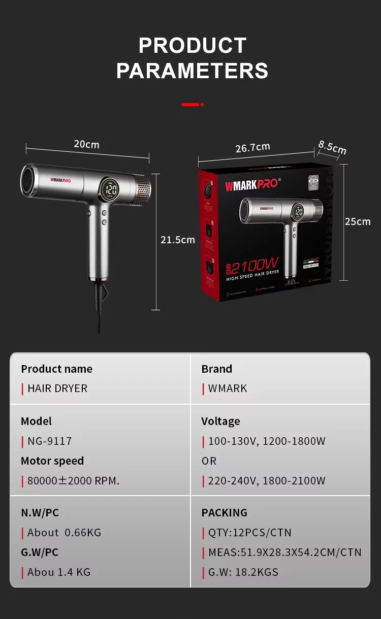 WMARK Hair Dryer Professional Blow Drier Negative Ion Air Blower Barber BLDC Motor Hair Dryer Machine Home Appliance NG-9117